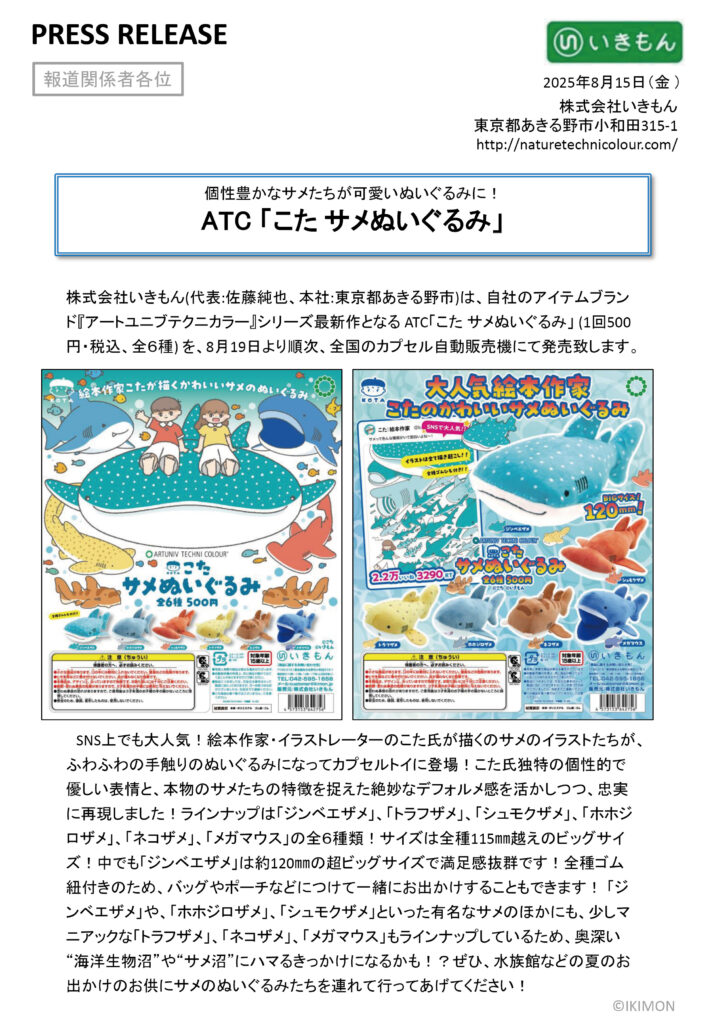 / プレスリリース / press release「こた サメぬいぐるみ」