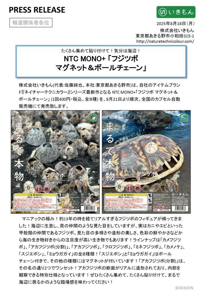 / プレスリリース / press release「NTC MONO+ フジツボマグネット&ボールチェーン」