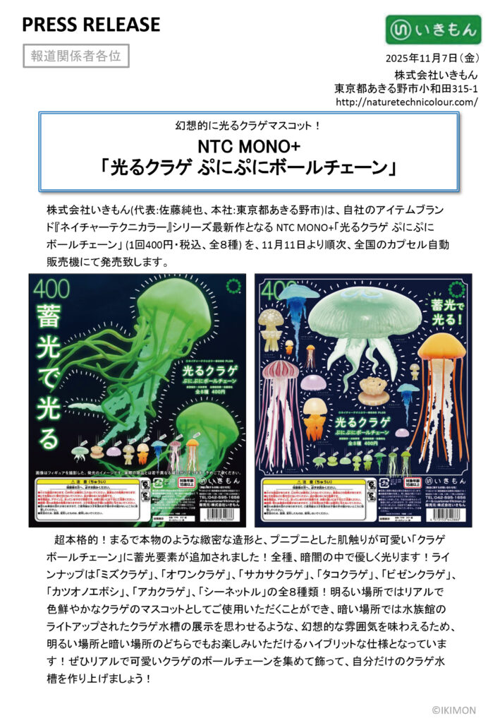 / プレスリリース / press release「NTC MONO+ 光るクラゲ ぷにぷにボールチェーン」