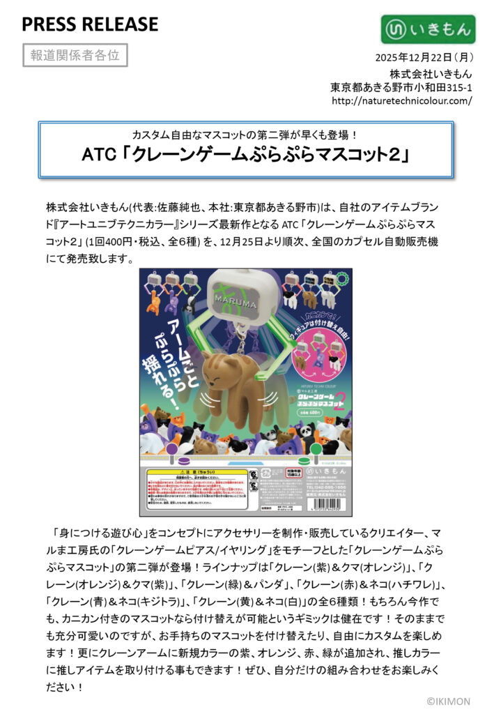 / プレスリリース / press release「クレーンゲームぷらぷらマスコット2」