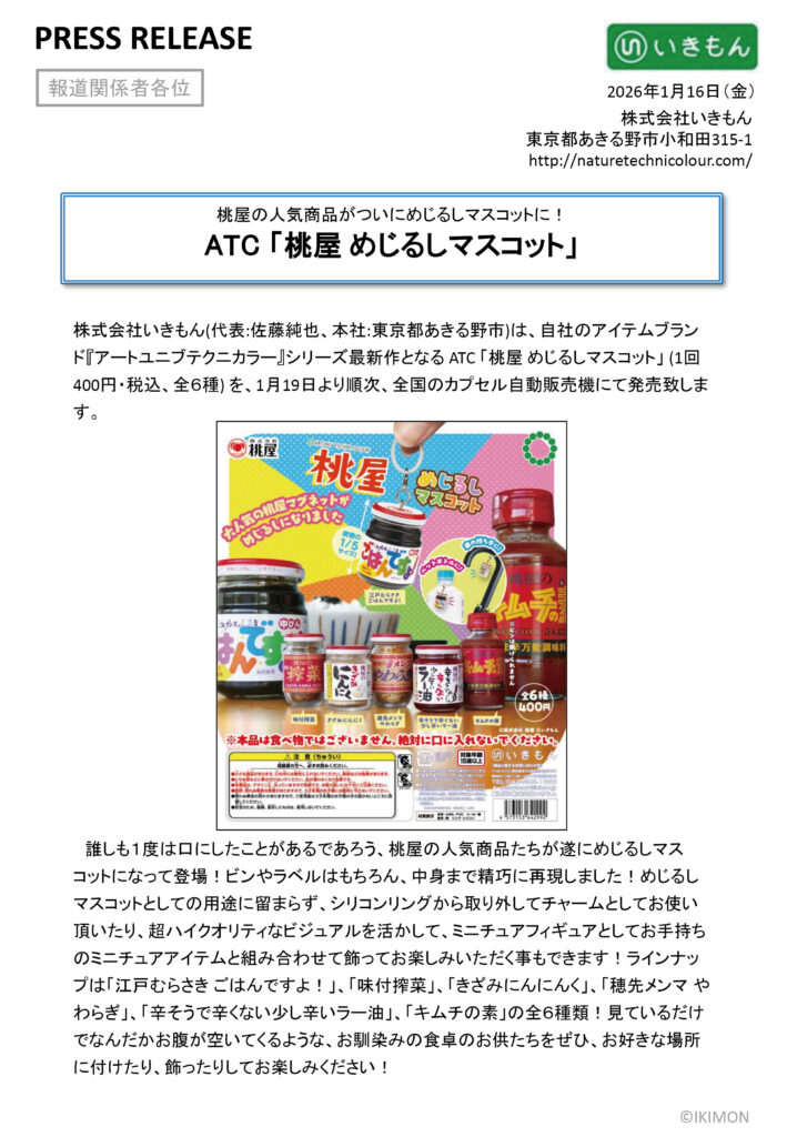 / プレスリリース / press release「ATC 桃屋 めじるしマスコット」